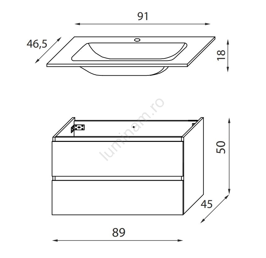 • Oferă un spațiu generos de depozitare pentru accesorii de baie și un compartiment dedicat pentru conducte și sifon.