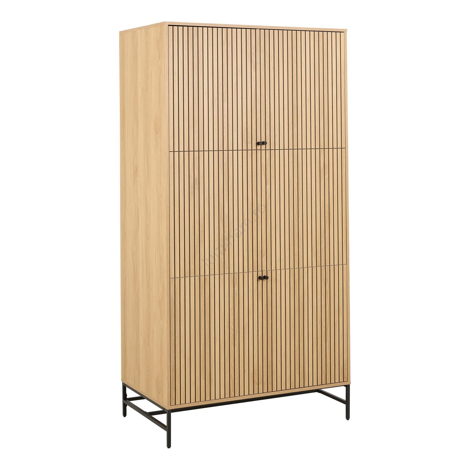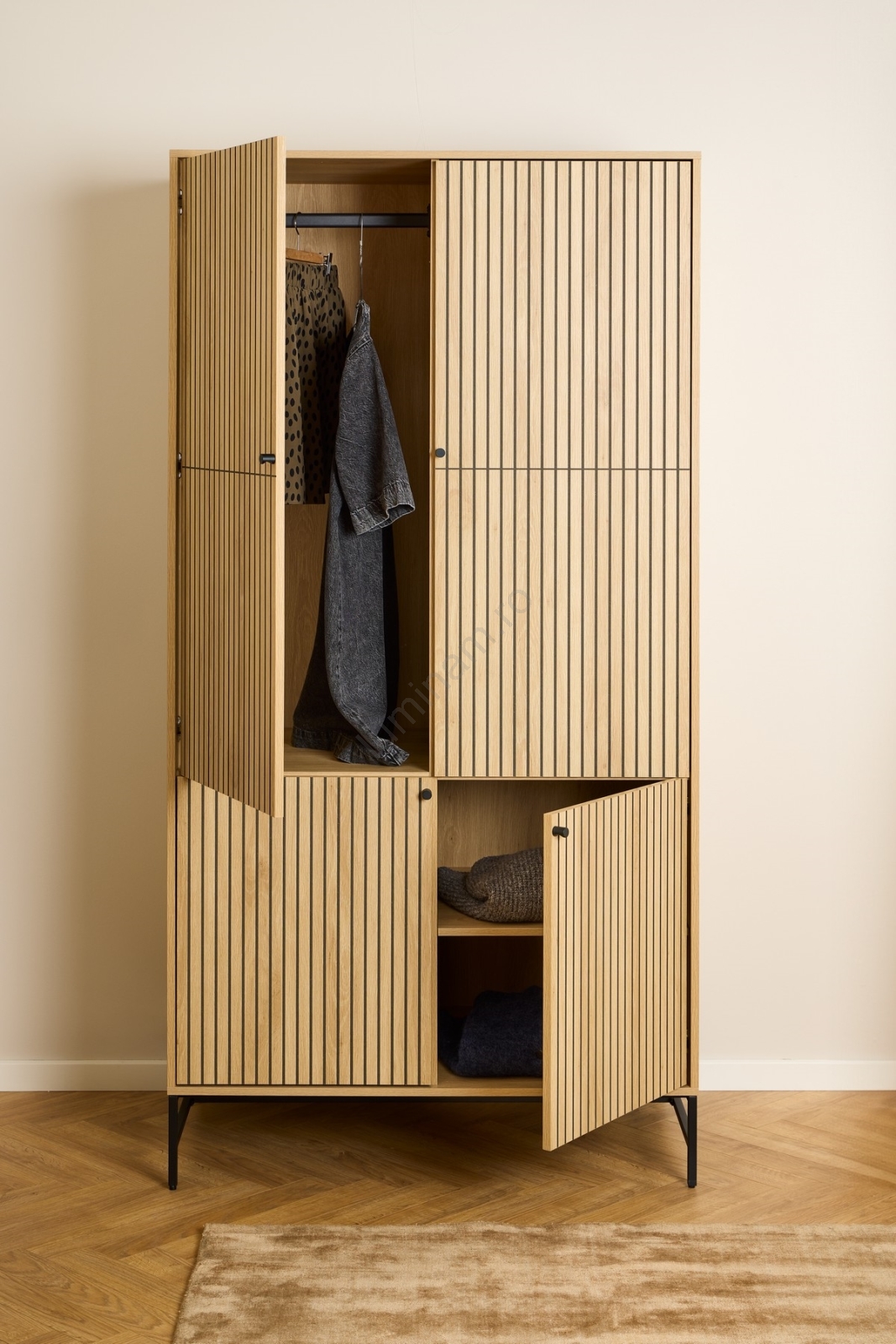 • Cadru, 4 uși și 6 rafturi din melamină craft cu textură pronunțată, bază din oțel vopsit în pulbere, negru mat.