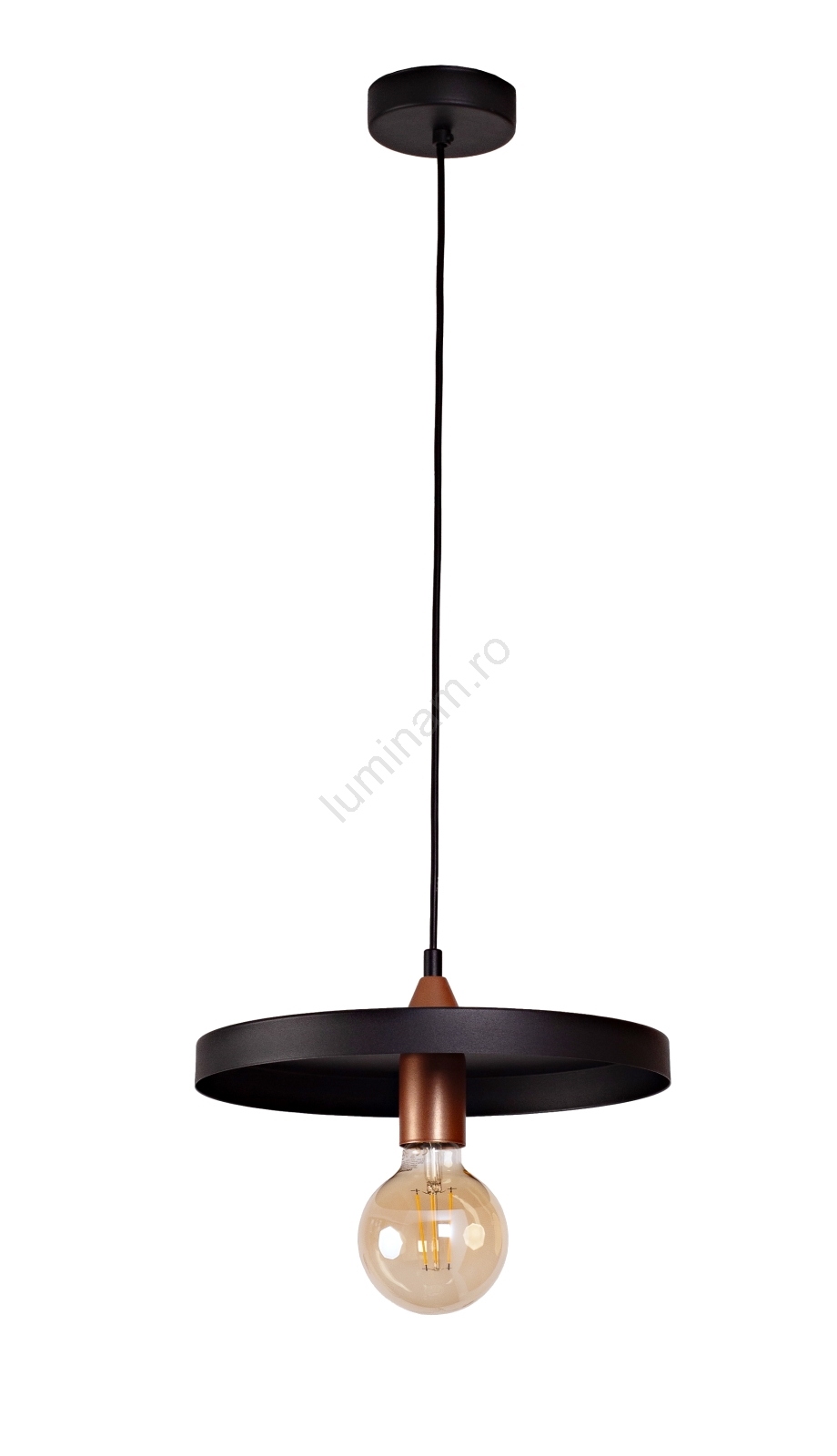 • Duolla - Pendul cu cablu IRONLINE, 1 x soclu E27, max. 15 W, 230 V, Ø 30 cm, cupru/negru