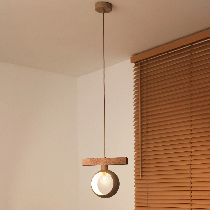 • Duolla - Pendul suspendat pe cablu IRONLINE 1xE27/15W/230V pin/stejar/bej