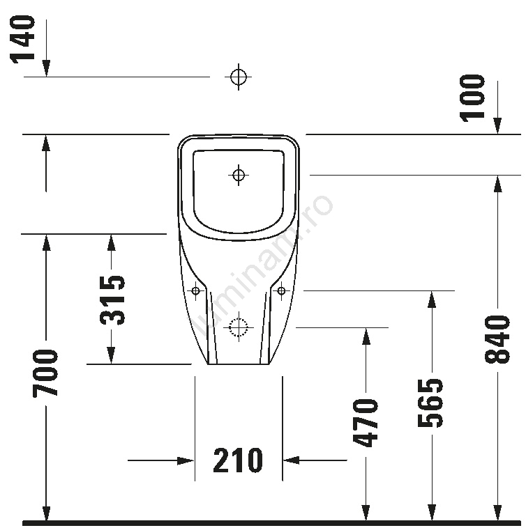 • Pisoarul are alimentare superioară a apei, ceea ce permite ascunderea discretă a țevilor și montarea ușoară.