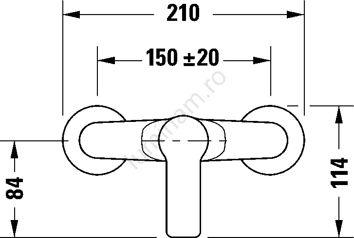 • Distanța între racordurile de apă este de 150 mm cu toleranța ± 20 mm.