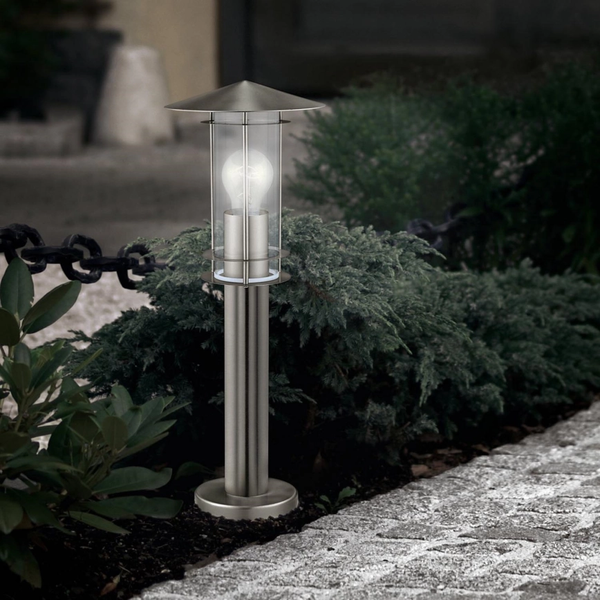 • Lampă de grădină elegantă din sticlă și oțel inoxidabil.