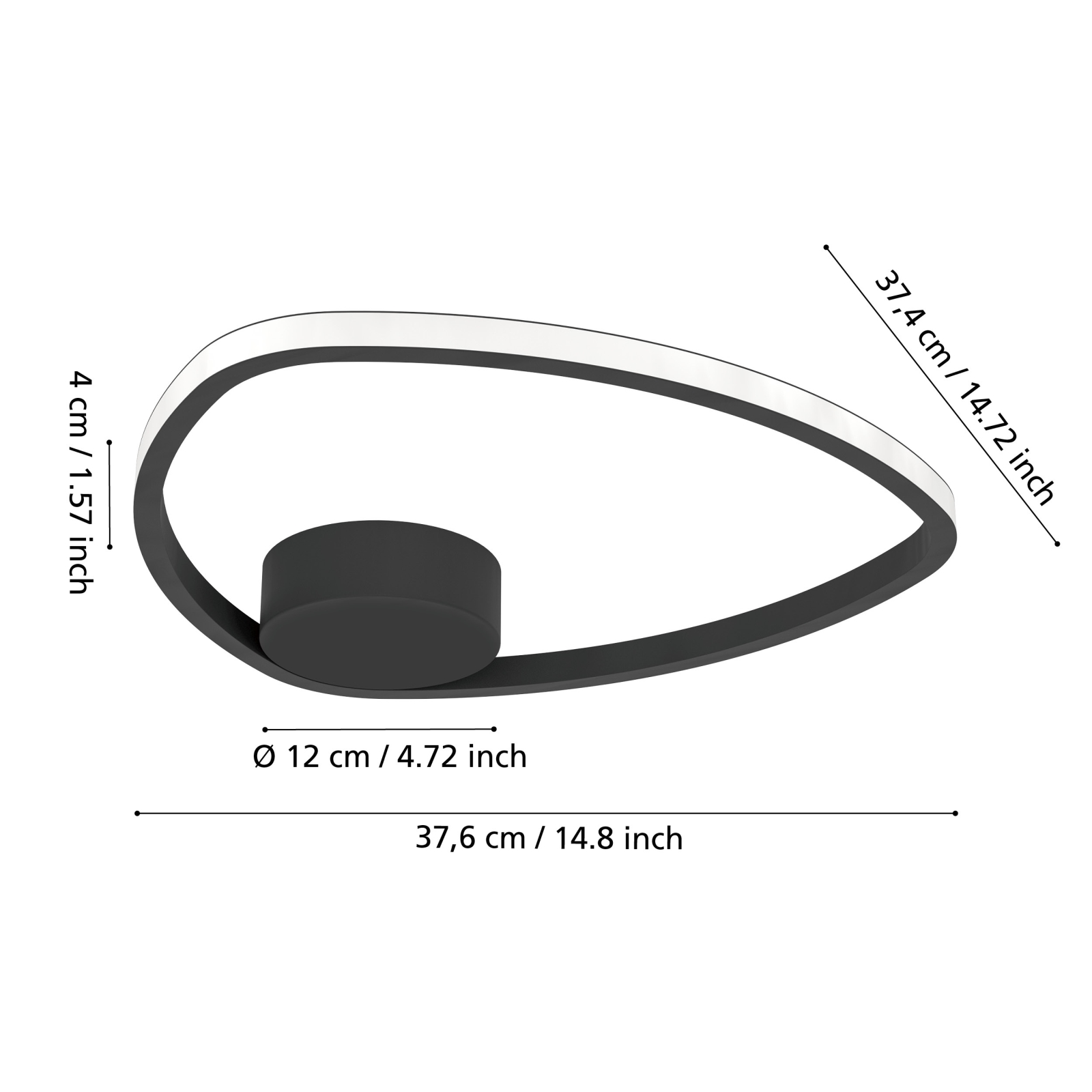 Eglo - Plafonieră LED, 9,7 W, 230 V, Ø 37,5 cm, neagră