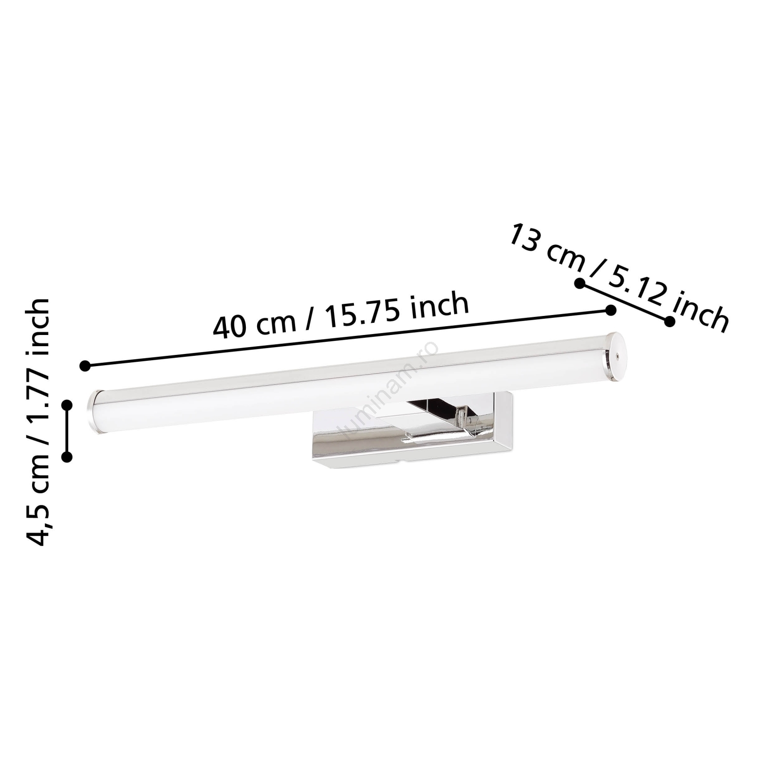 • Eglo – Aplica LED pentru oglindă de baie, 7,4 W, 230 V, 40 cm, IP44, negru