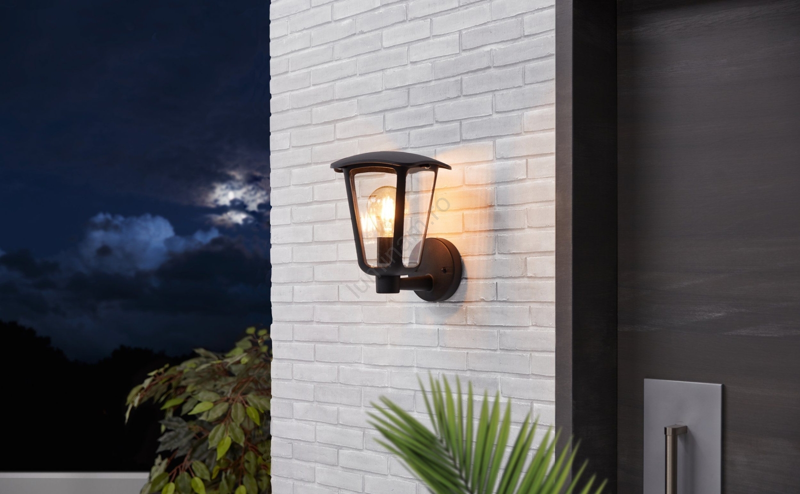 Articolul Eglo 98119 - Aplică perete exterior MONREALE 1xE27/60W/230V IP44 negru este caracterizat printr-un aspect plăcut și funcțional.  Produsul funcționează cu becuri cu soclu E27. De aici se pot cumpăra alte becuri la prețuri avantajoase.
