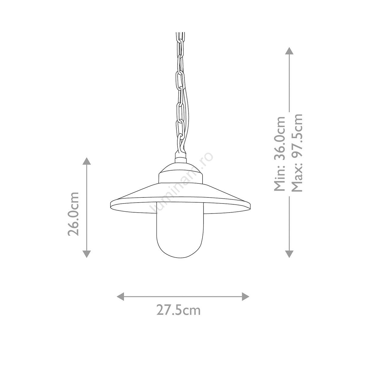 Articolul Elstead - Candelabru exterior cu lanț KLAMPENBORG 1xE27/60W/230V IP44 crom mat este caracterizat printr-un aspect plăcut și funcțional.  Produsul funcționează cu becuri cu soclu E27. De aici se pot cumpăra alte becuri la prețuri avantajoase.