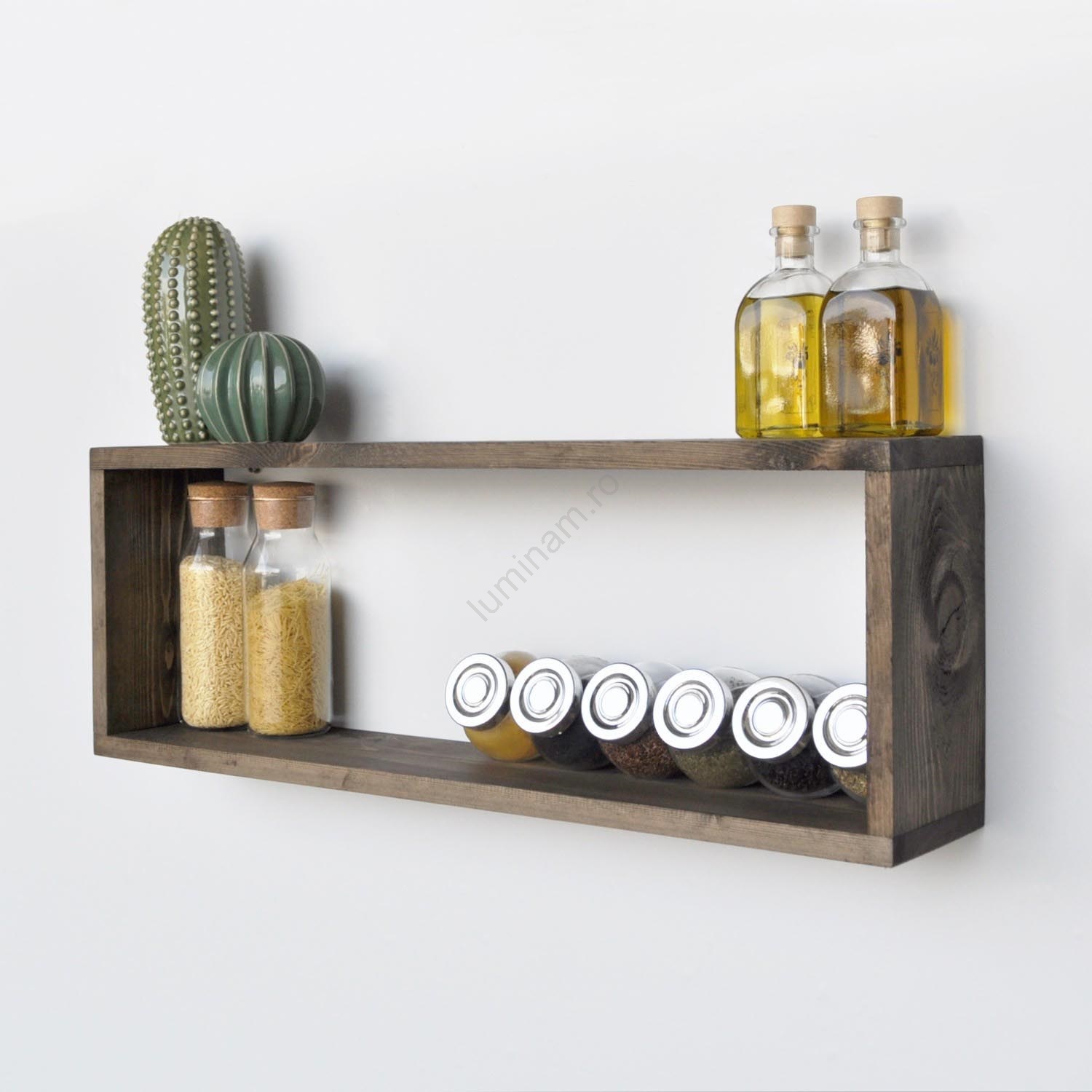• Etajeră de perete din lemn de molid.