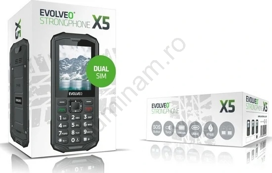 Evolveo StrongPhone X5, telefon Dual SIM rezistent la apă, negru/gri