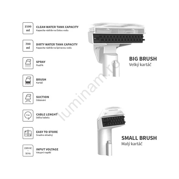 • Este destinat curățării în profunzime a covoarelor, tapițeriei, saltelelor și a interiorului vehiculelor.