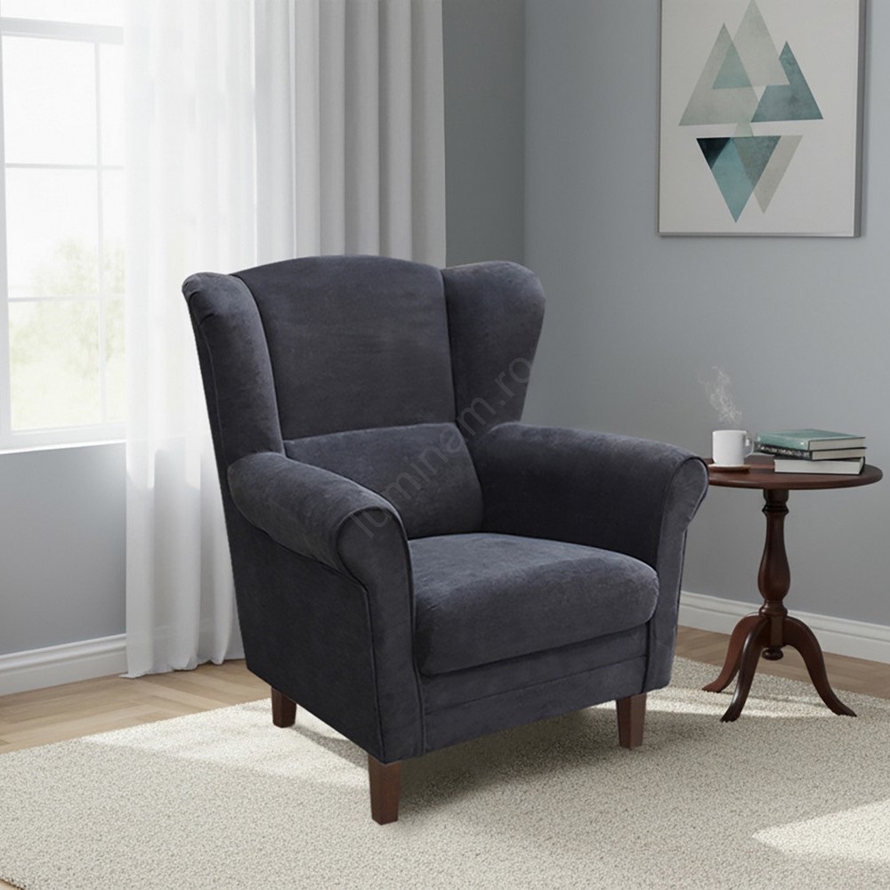 • Fotoliu cu design atemporal, ideal pentru living sau dormitor.