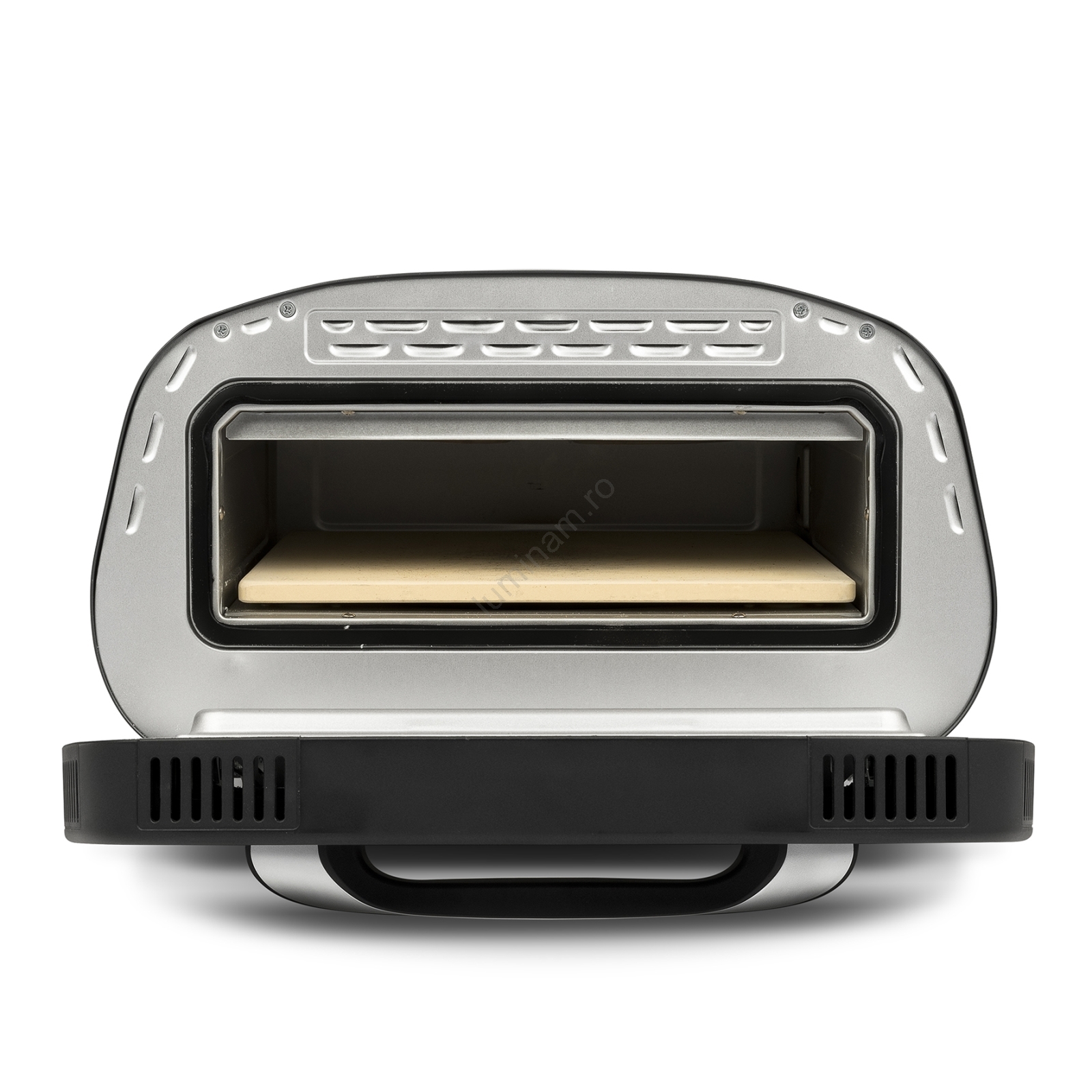 • Set complet de accesorii: piatră de copt (32x32 cm), tavă emailată, grătar din oțel inoxidabil, lopată din aluminiu și tăietor pentru pizza.