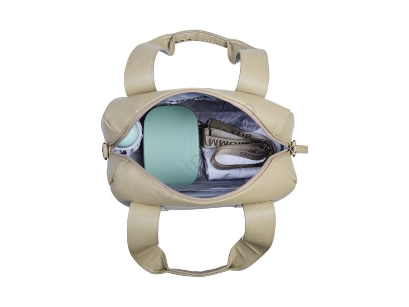 • Geanta de înfășat cu fermoar este prevăzută cu mânere pentru transportul în mână, o curea de umăr și mânere pentru agățarea pe cărucior.
