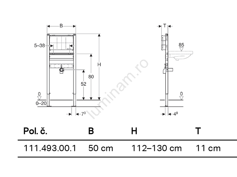 Geberit 111.493.00.1 - Modul încastrat Duofix pentru lavoar suspendat, 112-130 cm