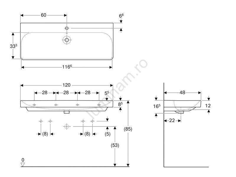 • Lavoarul poate fi combinat cu un corp pentru lavoar pentru un design compact și funcțional.
