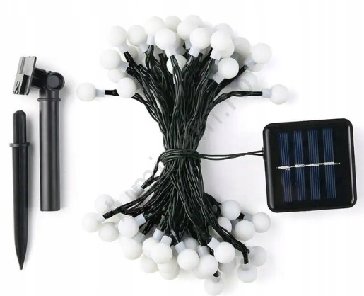 Ghirlandă solară decorativă, 50 LED, 8 funcții, 500 mAh, 9,5 m, IP67, alb cald