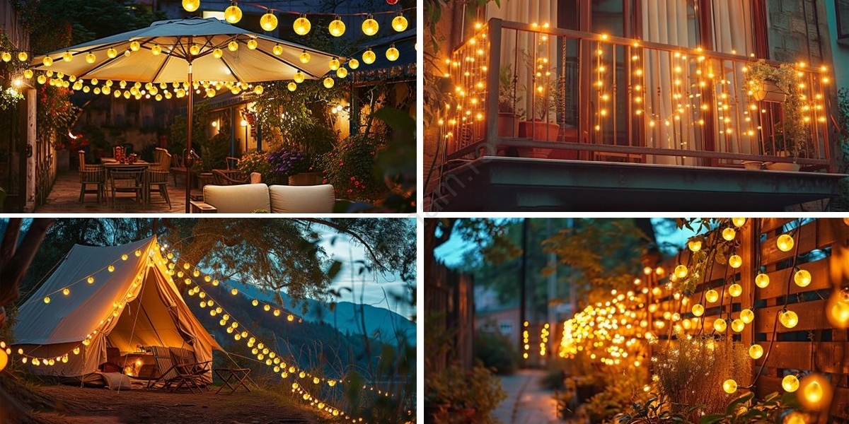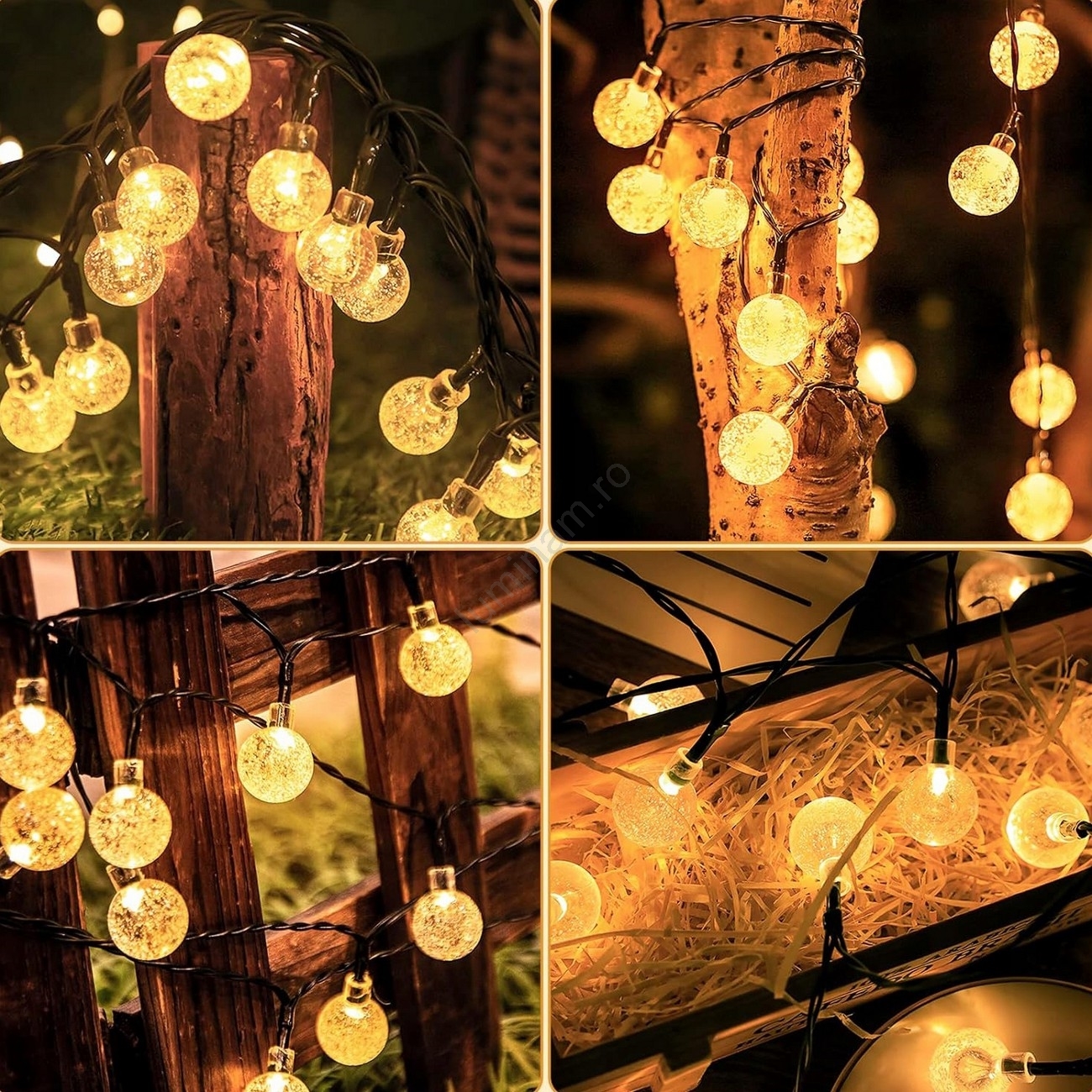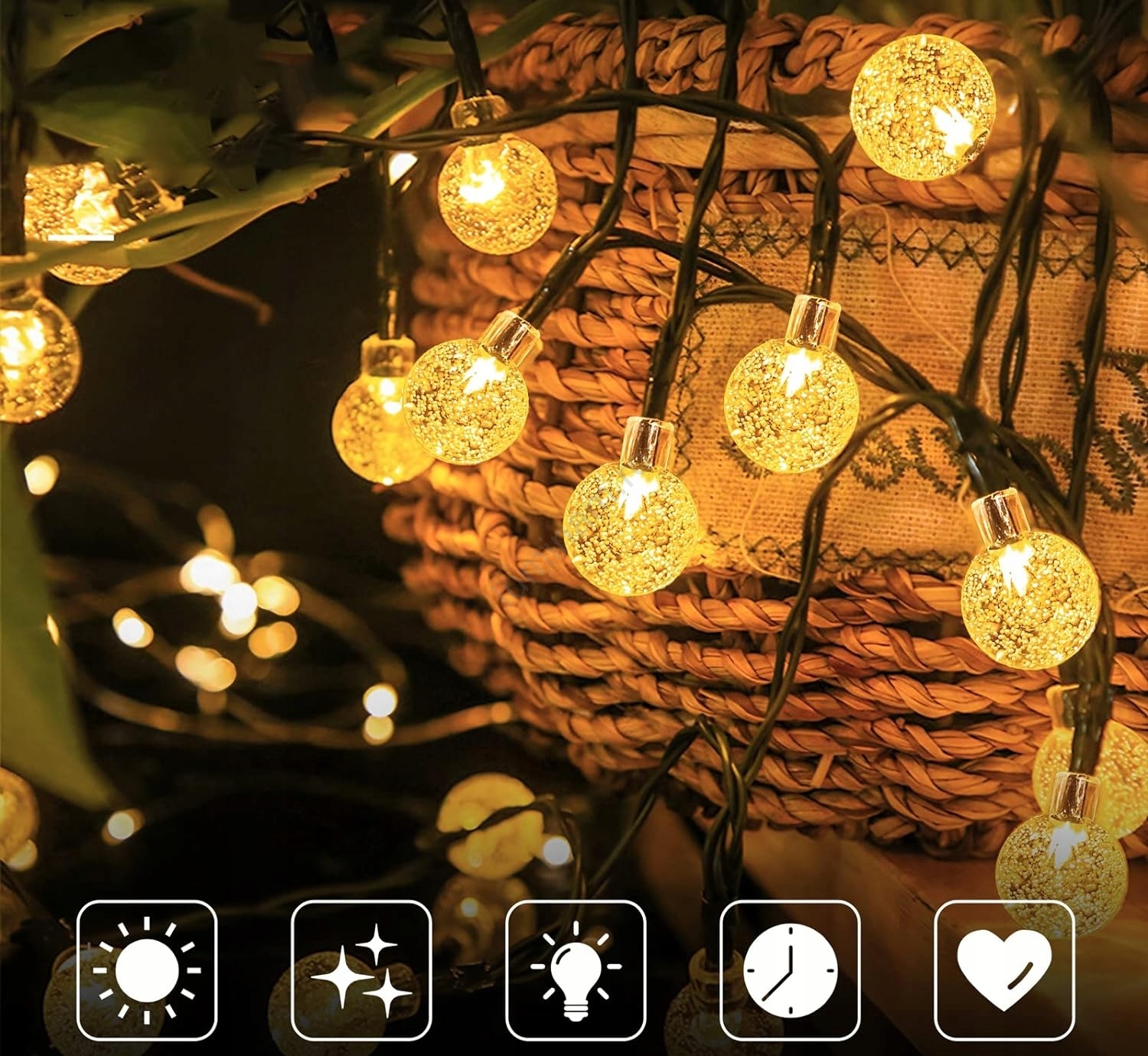 Ghirlandă solară decorativă LED, 30 LED, 8 funcții, baterie 500 mAh, 6,5 m, IP67, alb cald