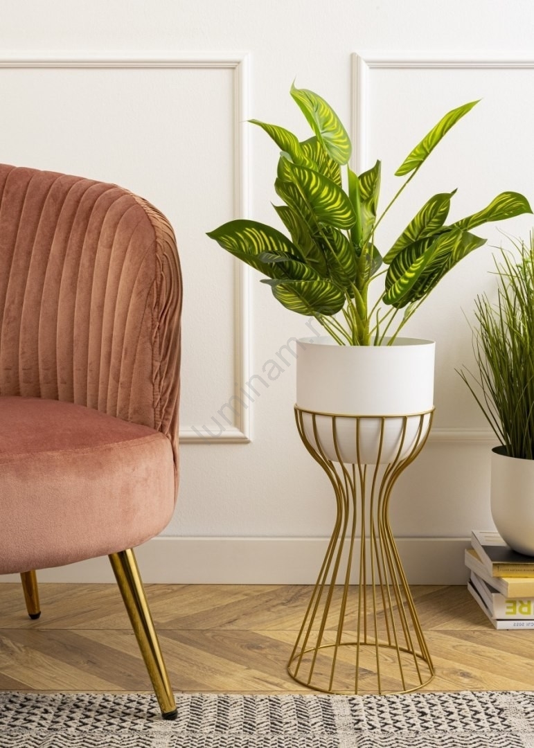 • Ghiveci metalic de flori LOFT 46x20 cm auriu/alb
