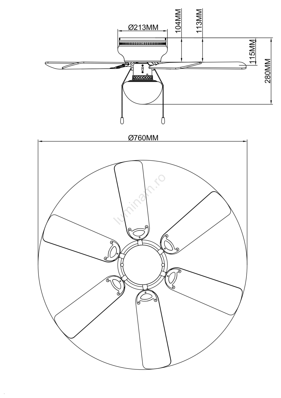 • Controlul luminii și ventilatorului se face prin tragerea șnururilor.