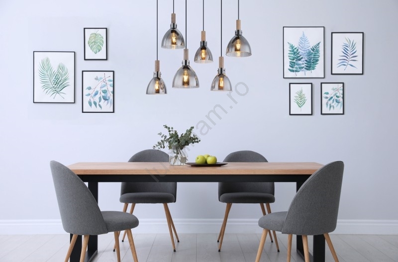 Articolul Globo - Lustră suspendată pe cablu 6xE27/6W/230V negru/fumuriu este caracterizat printr-un aspect plăcut și funcțional.  Produsul funcționează cu becuri cu soclu E27. De aici se pot cumpăra alte becuri la prețuri avantajoase.