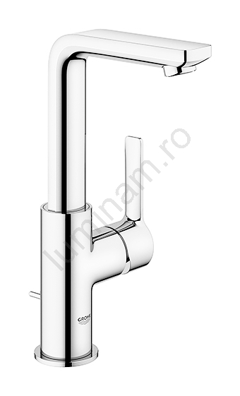 • Baterie de lavoar cu pârghie GROHE Lineare, cu pipă înaltă rotativă, elegantă.