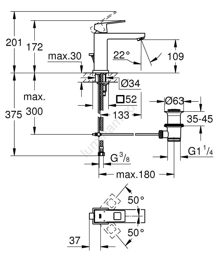 • Tehnologia GROHE Water Saving reduce consumul de apă la 5 l/min, menținând un debit optim.