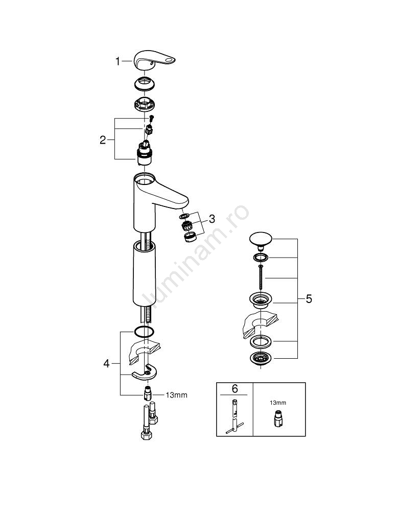 • Montaj monofor, potrivit pentru lavoare montate pe blat.