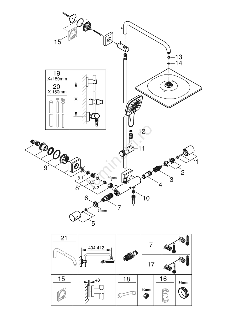 • GROHE FastFixation cu suport superior reglabil pentru instalare facilă.