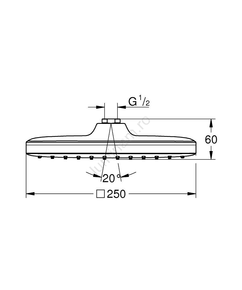 • Cap de duș generos de 250 x 250 mm pentru o experiență de duș luxoasă.