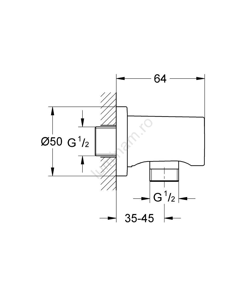 • Cot de perete DN 15 pentru o conectare fiabilă a dușului de mână.