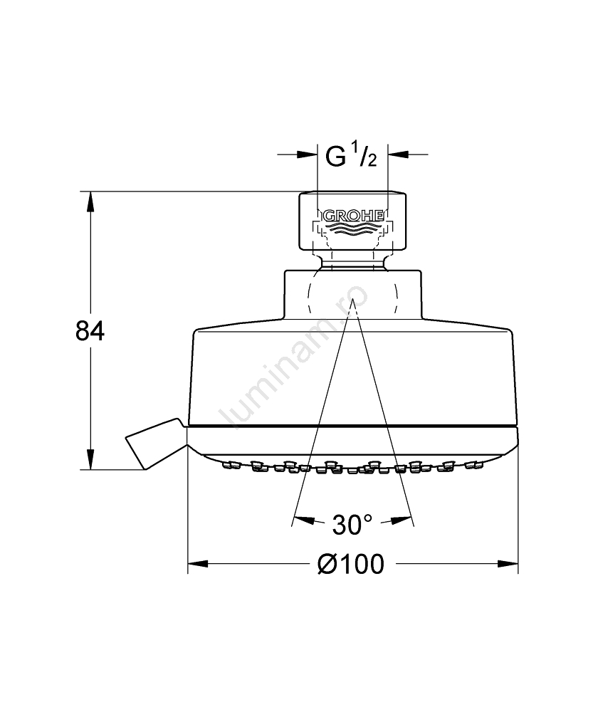 • Diametrul capului 100 mm oferă o acoperire largă a jetului de duș.