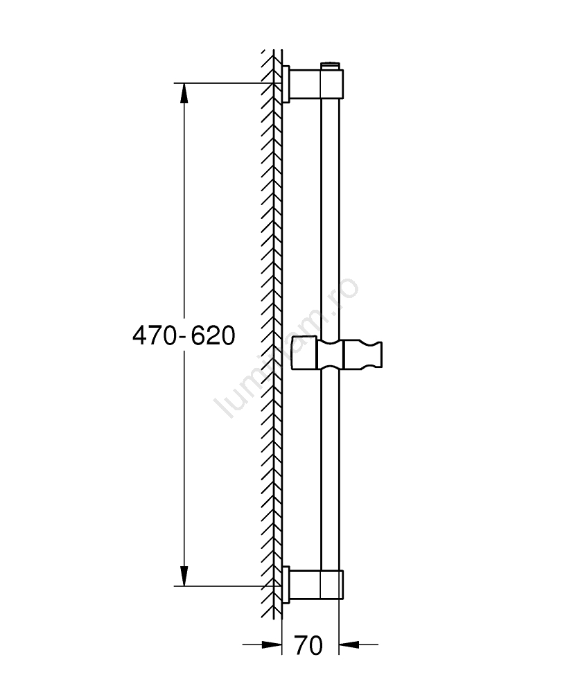 • Bară de duș de 600 mm cu suporturi de perete pentru instalare ușoară.