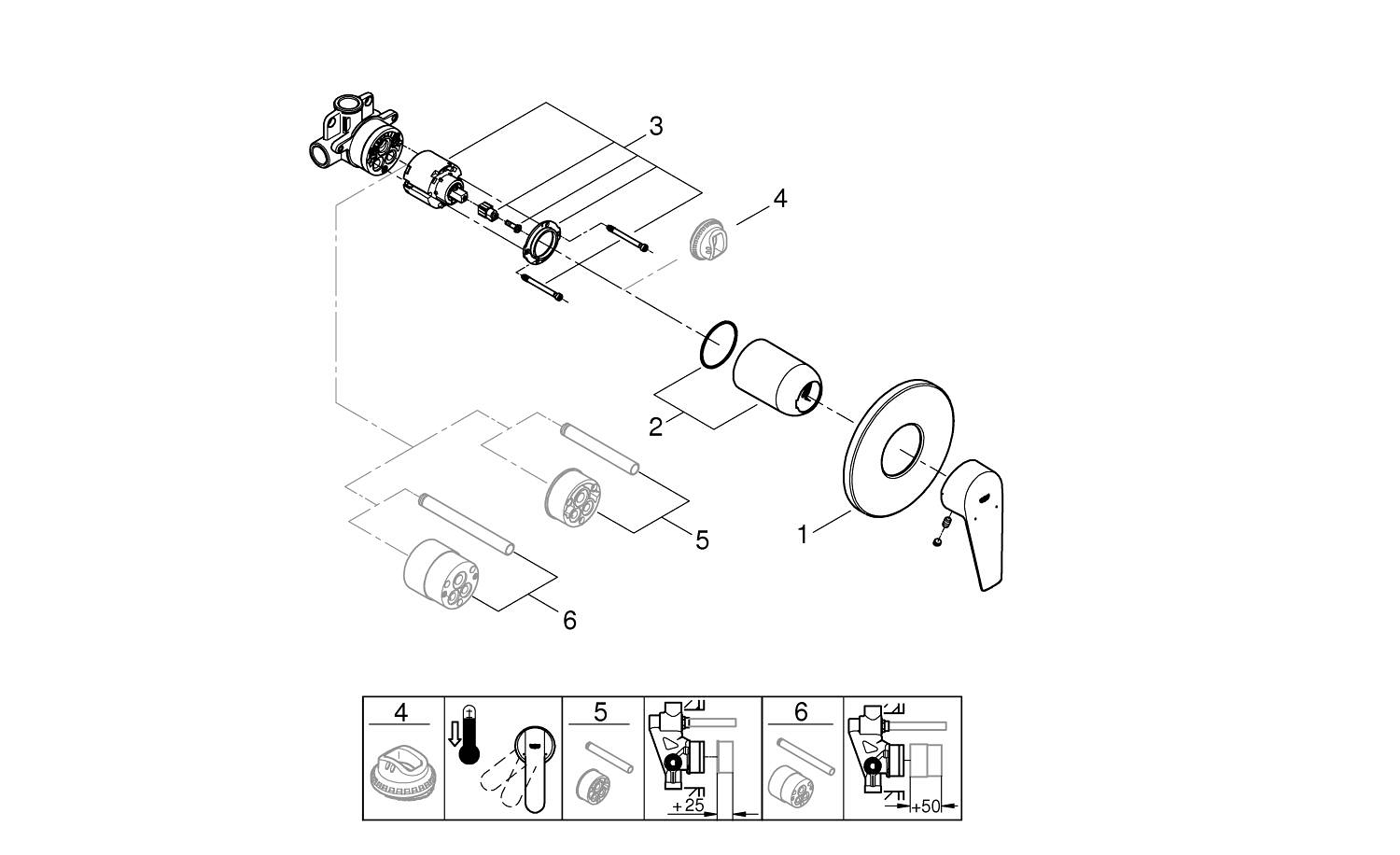 • Cartuș ceramic GROHE Long-Life de 46 mm asigură un control fluid și precis.