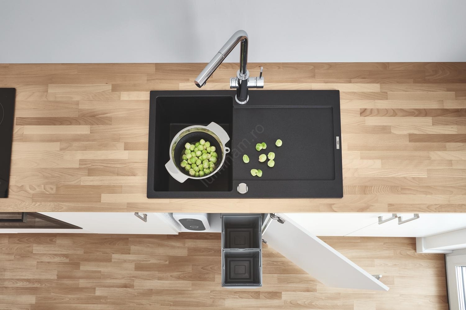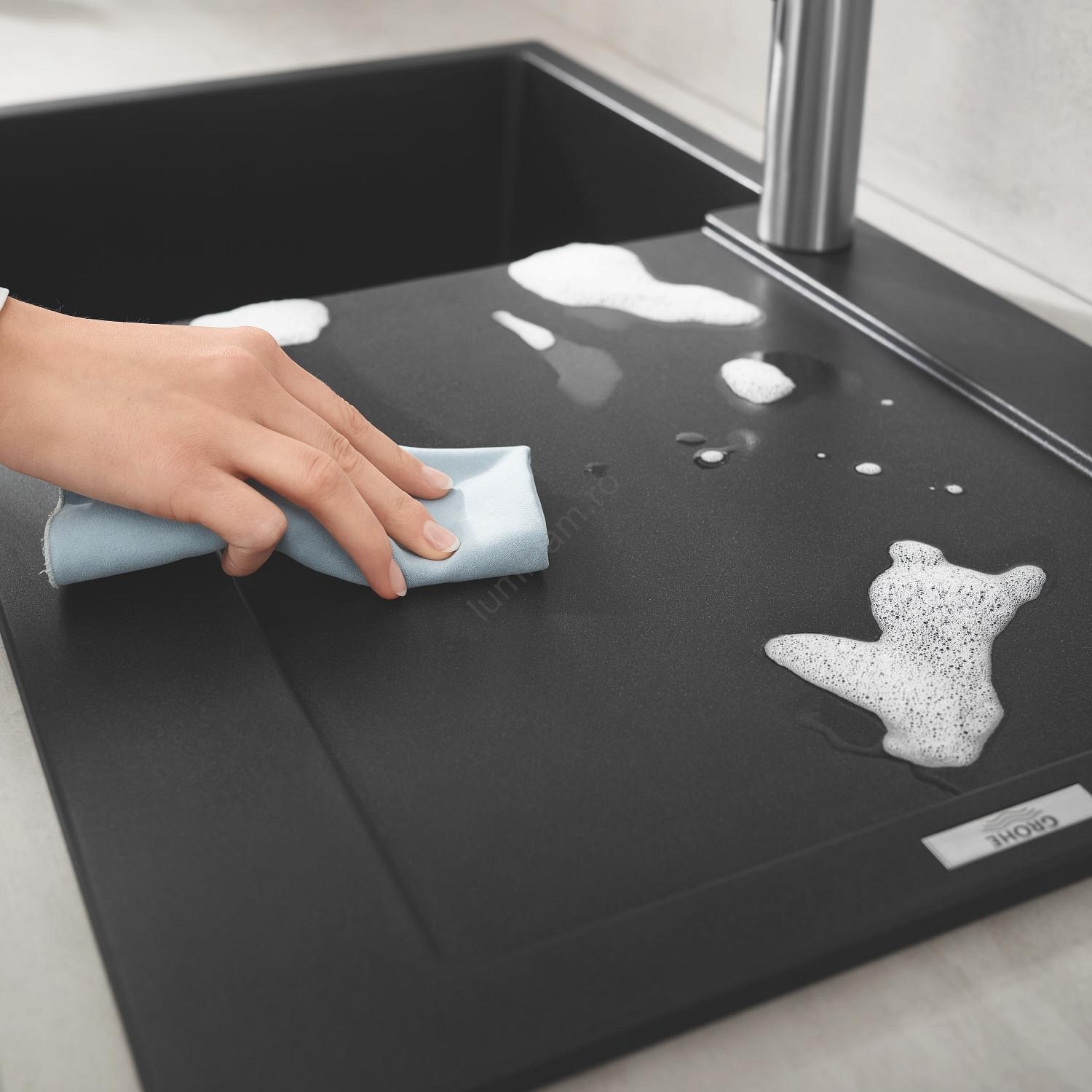 • Chiuvetă compozită GROHE K500 cu scurgător pentru bucătării moderne.