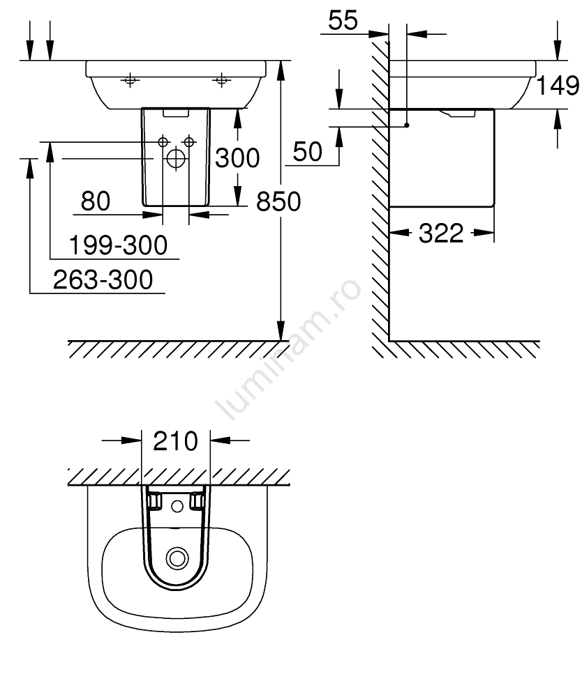 • Dimensiuni: lățime 210 mm, adâncime 300 mm, înălțime 322 mm, potrivită pentru diverse dimensiuni de lavoare.