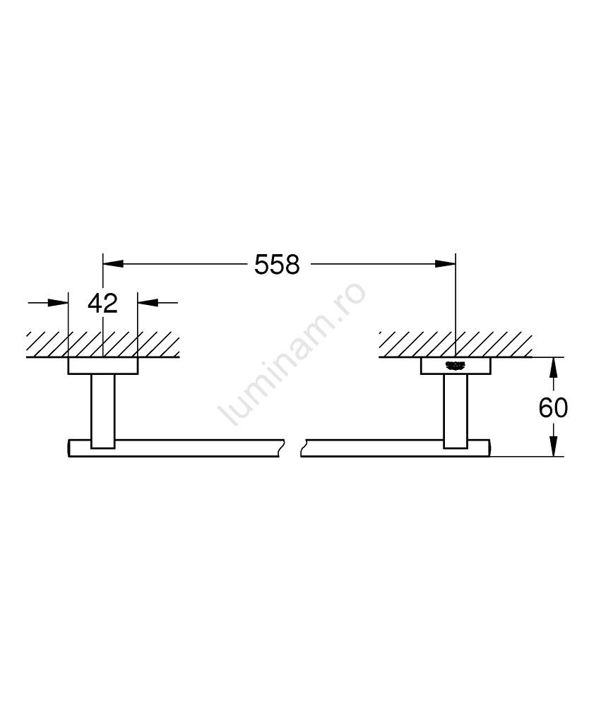 • Lungime totală 600 mm, lungime utilă 558 mm pentru agățare confortabilă a prosoapelor.