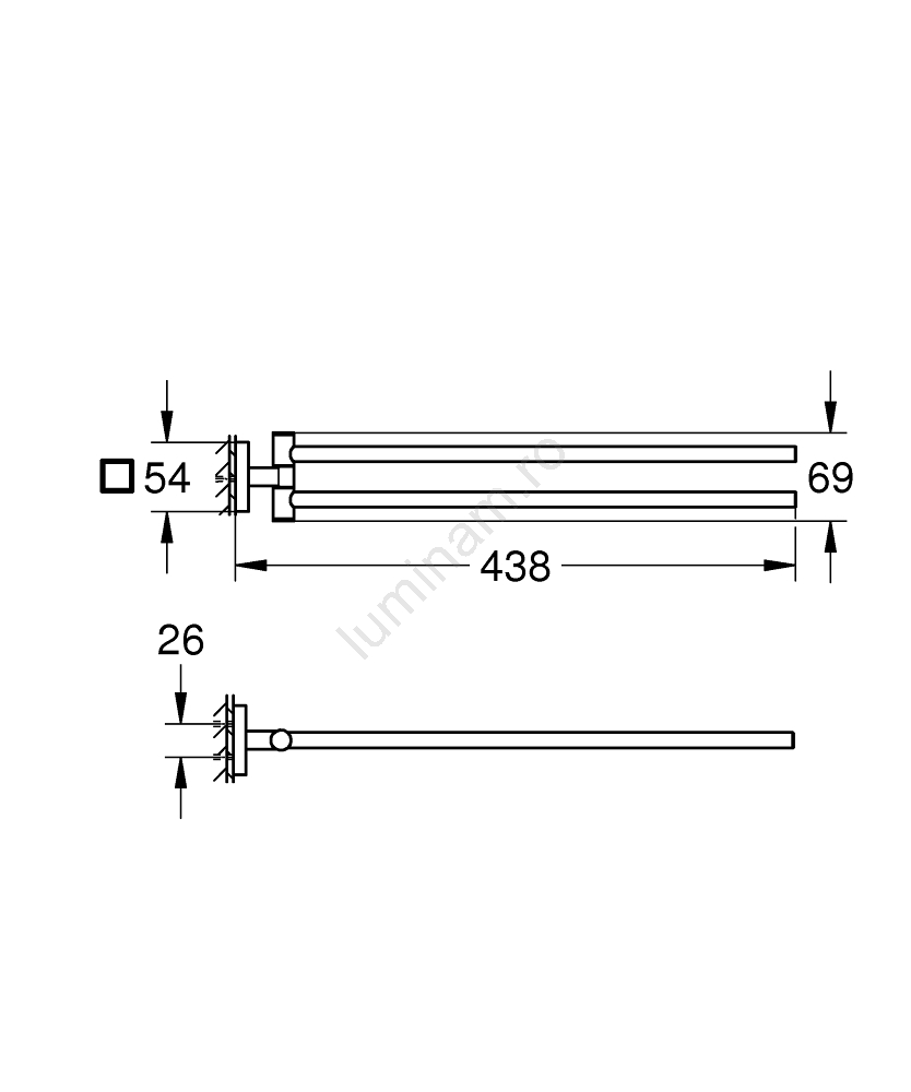 • Lungimea de 438 mm oferă suficient spațiu pentru prosoape.