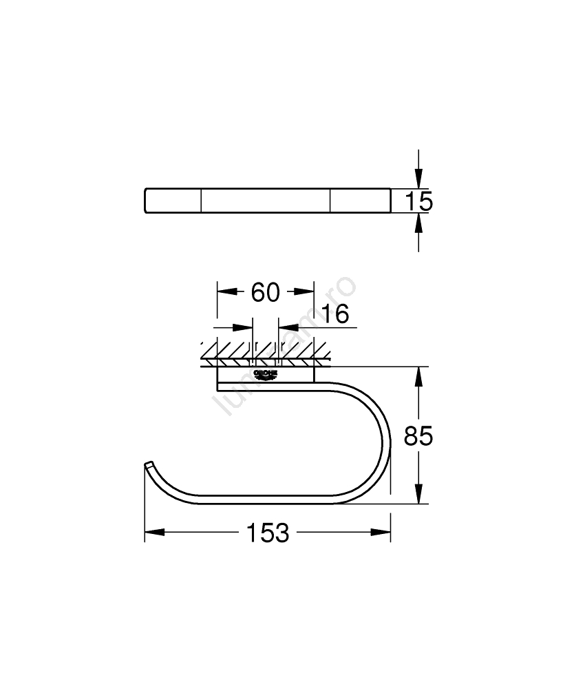 • Suport elegant pentru hârtie igienică, fără capac, pentru băi moderne.