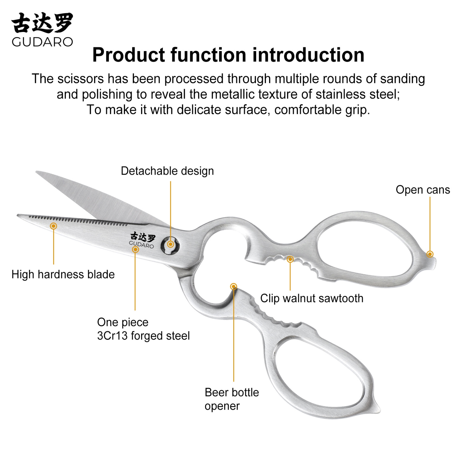 • Foarfecile sunt ajutorul ideal pentru porționarea păsărilor, tăierea ierburilor aromatice și deschiderea ambalajelor rezistente.