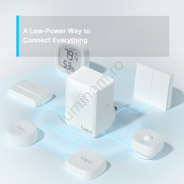 • Tapo H100 este o centrală inteligentă pentru casă care conectează mai multe dispozitive Tapo și le coordonează dintr-o singură aplicație.
