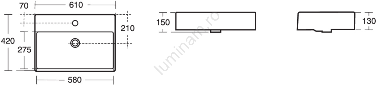 • Lavoarul este fabricat din ceramică sanitară de înaltă calitate.