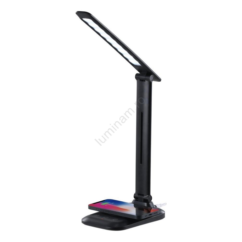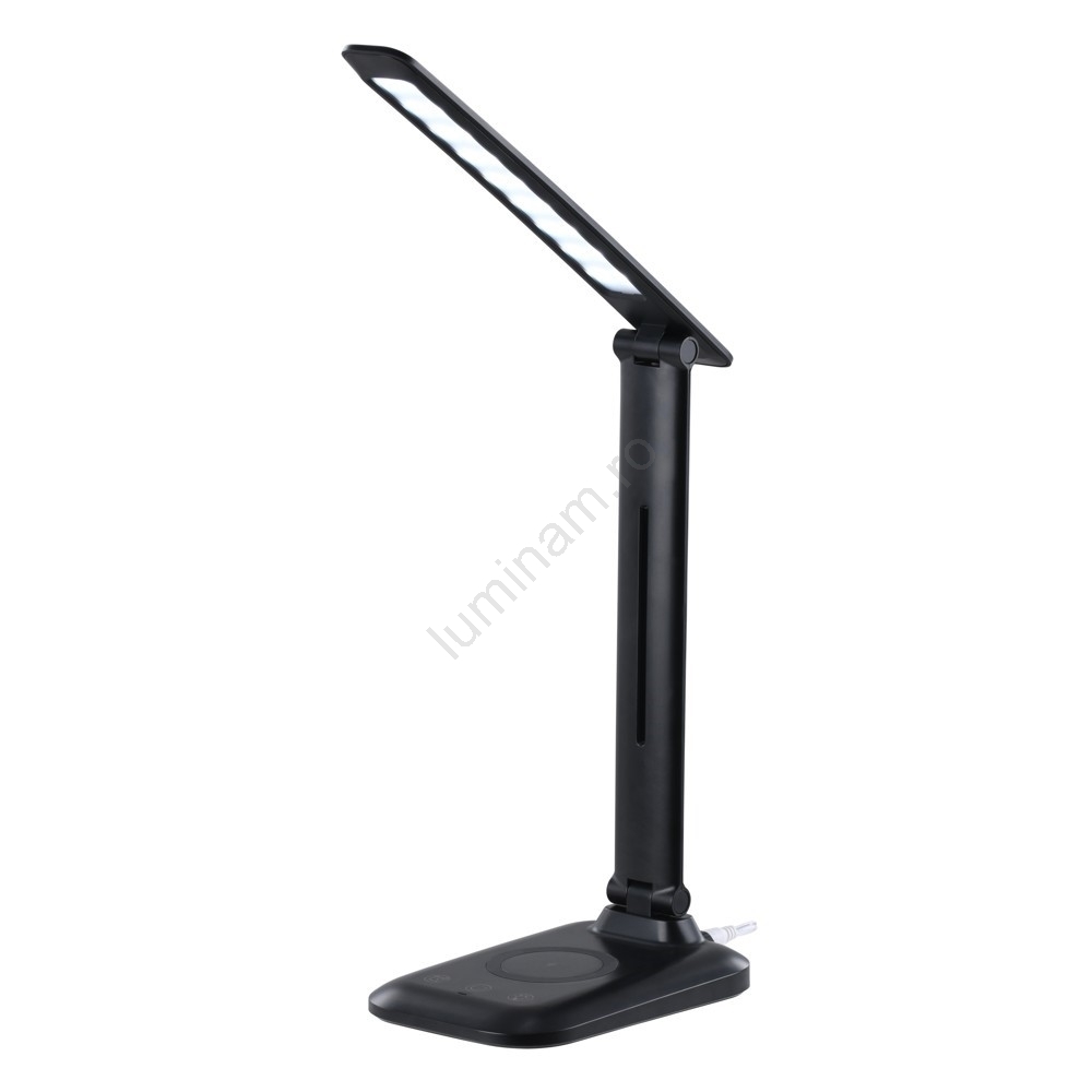 Lampă de birou LED reglabilă LUMI cu încărcare wireless Qi și port USB, LED/7W/230V, neagră