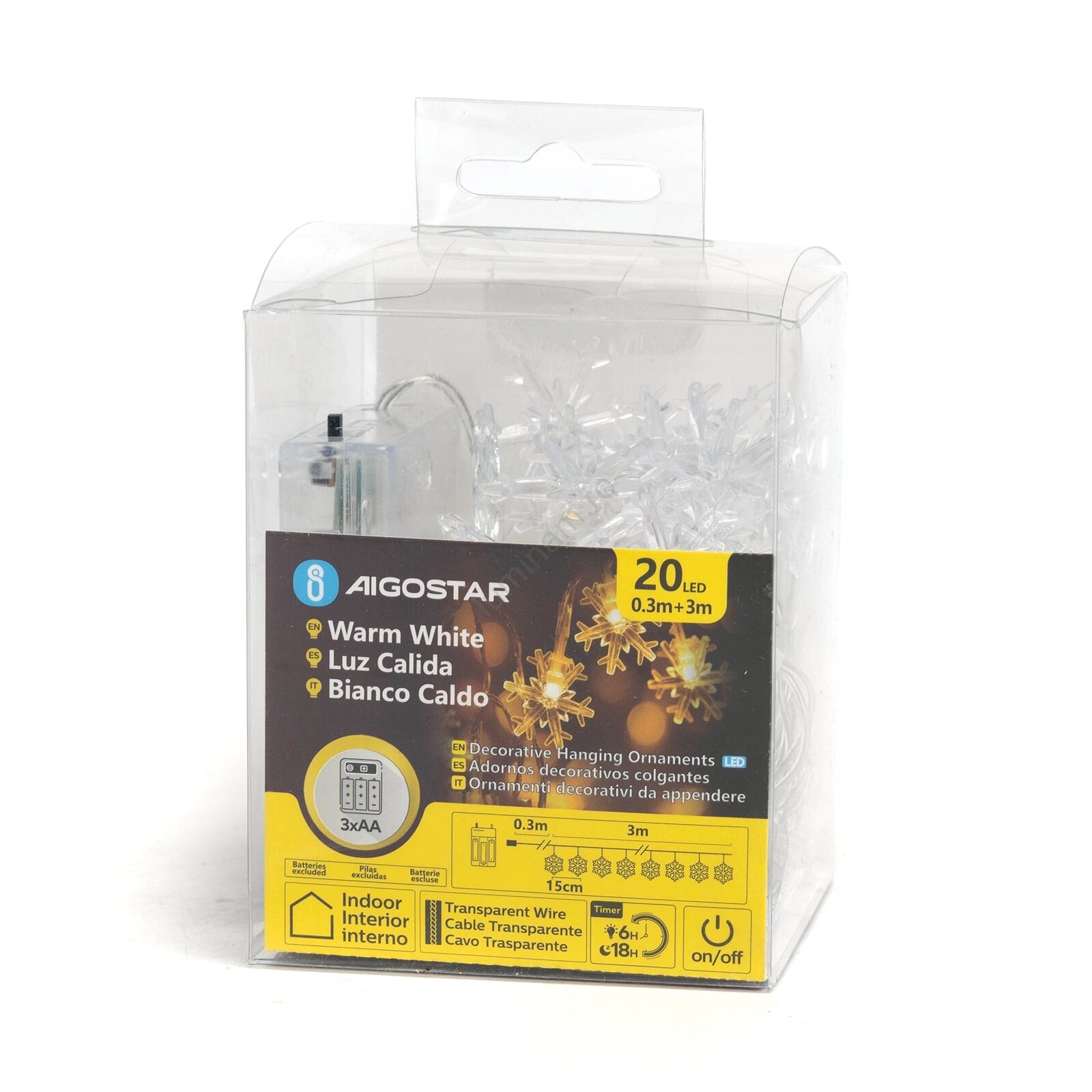 • Aigostar - Ghirlandă LED, 20 LED, 3x AA, 3,3 m, fulgi de zăpadă