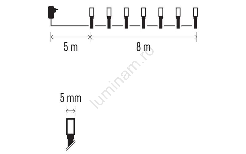• Ghirlandă luminoasă LED 13 m, 80 LED, 230 V, 8 moduri, IP44, alb cald