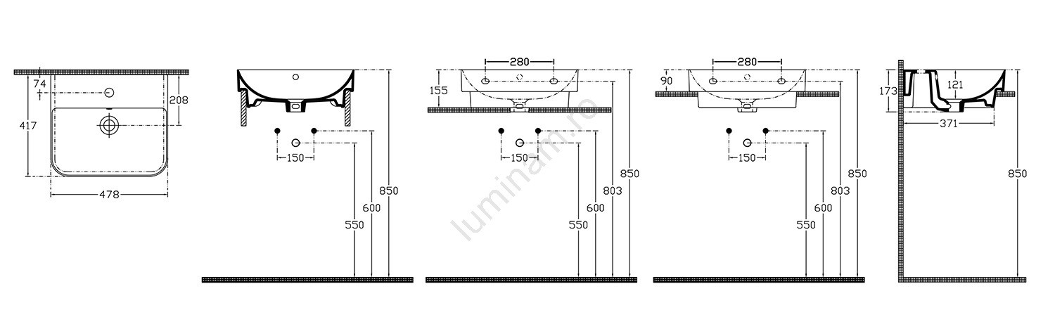 • Poate fi montat pe perete, așezat pe blat sau încastrat în blat.