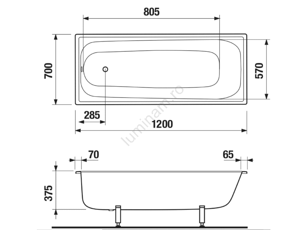 • Formă dreptunghiulară clasică, dimensiuni: 1200 × 700 × 375 mm.