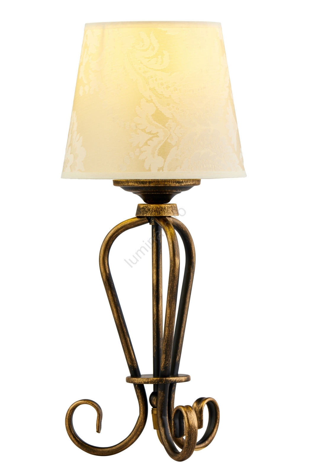 • Soclul din metal patinat manual și abajurul din țesătură sunt o combinație care încântă prin frumusețea sa.