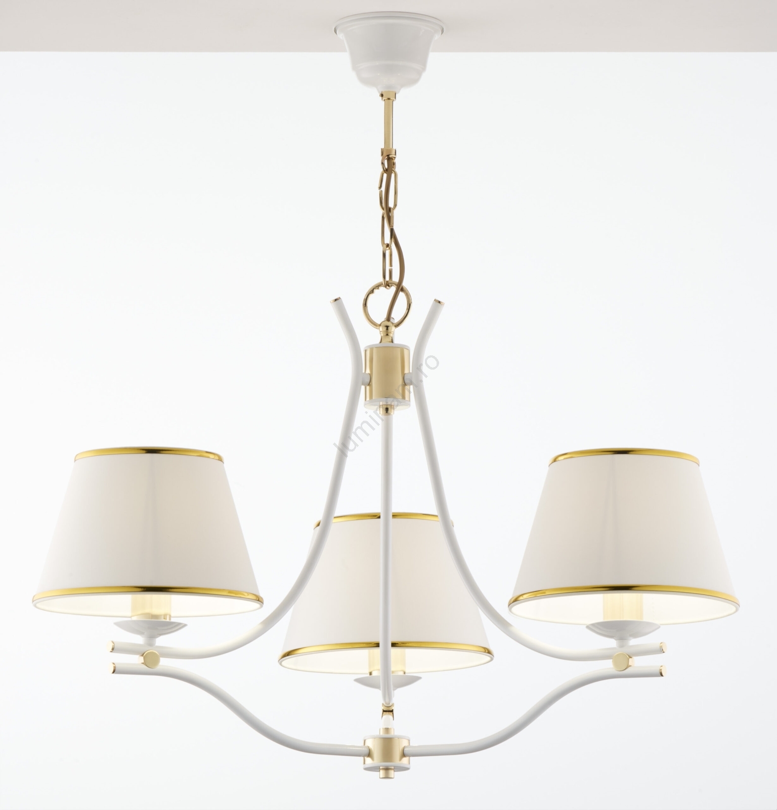 Articolul Jupiter 2085 - Candelabru pe lanț SAMBA 3xE27/15W/230V alb/auriu este caracterizat printr-un aspect plăcut și funcțional.  Produsul funcționează cu becuri cu soclu E27. De aici se pot cumpăra alte becuri la prețuri avantajoase.