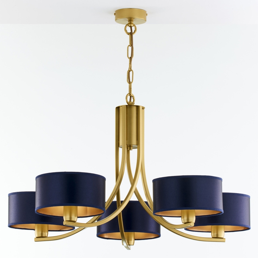 • Jupiter 2094 - Candelabru ARTHUR suspendat cu lanț, 5xE27/15W/230V, albastru/auriu