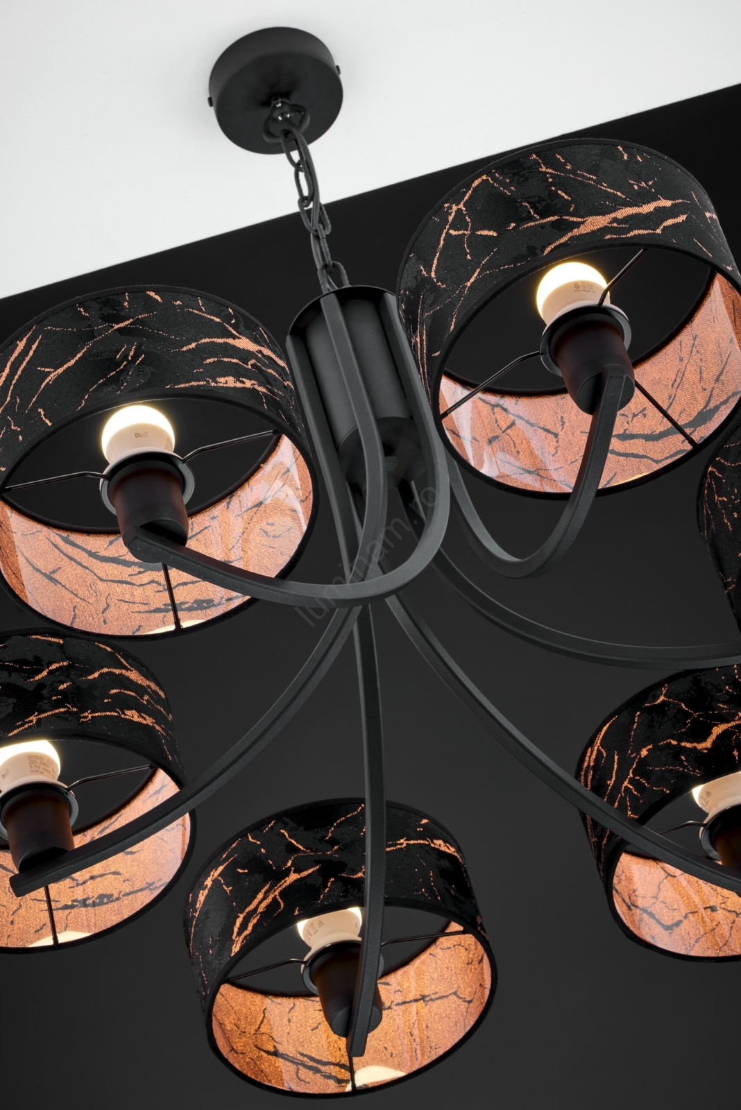 • Jupiter 2108 - Candelabru suspendat ARTHUR 6xE27/15W/230V negru/portocaliu/decor marmură